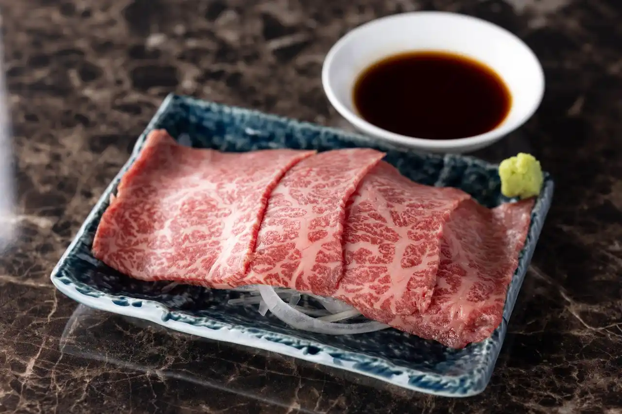 きめ細かな霜降りが美しい厳選和牛を、その日おすすめの部位で贅沢に盛り合わせた一皿。 |