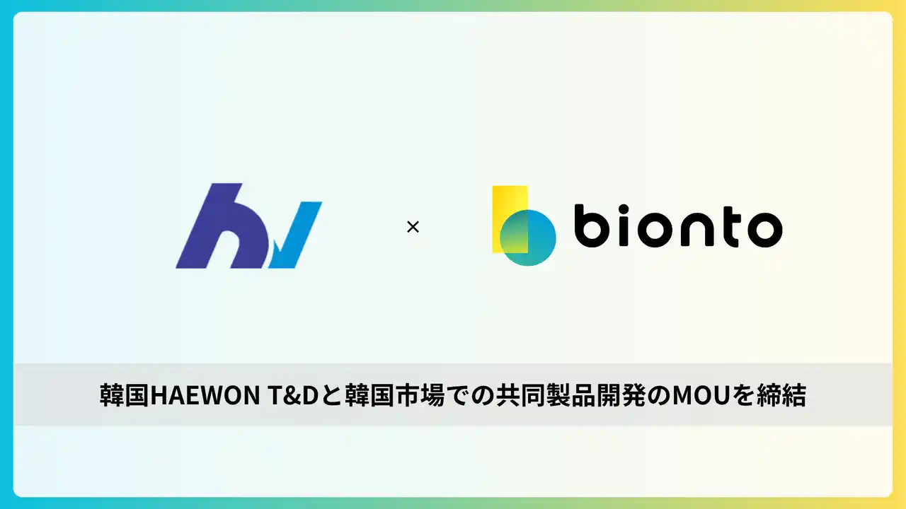 東北大発バイオテックスタートアップの株式会社bionto(本社:宮城県仙台市、代表取締役:妹尾 浩充、以下「ビオント」)は、韓国の化粧品ODM/OEMメーカーであるHAEWON T&D CO.,LTD.(本社:韓国釜山広域市、CEO:HYUN KIWOONG、以下「ヘウォン」)と、 イオン化ミネラルヒアルロン酸複合原料(以下、 Hyalion(TM)) とイオントロニクス技術を活用した美容関連事業の共同検討に関する基本合意書(MOU)を締結したことをお知らせいたします。 |