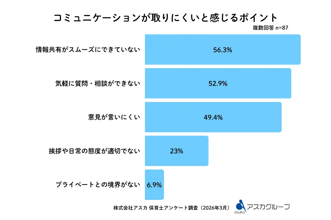 一定数の保育士が、現在もコミュニケーションに課題を感じていることが分かります。 |
