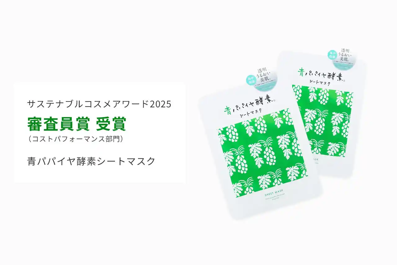 株式会社三旺インターナショナル(代表取締役:前田健司、本社:岐阜県岐阜市)が販売する商品「青パパイヤ酵素シートマスク」が、人にも地球にもやさしいコスメを表彰する「サステナブルコスメアワード2025」において、「審査員賞(コストパフォーマンス部門)」を受賞いたしました。 |