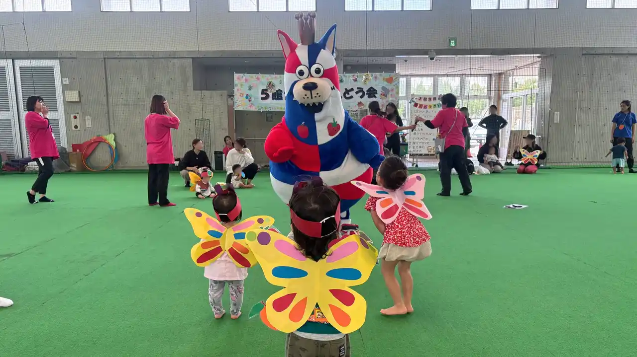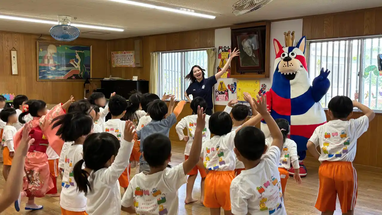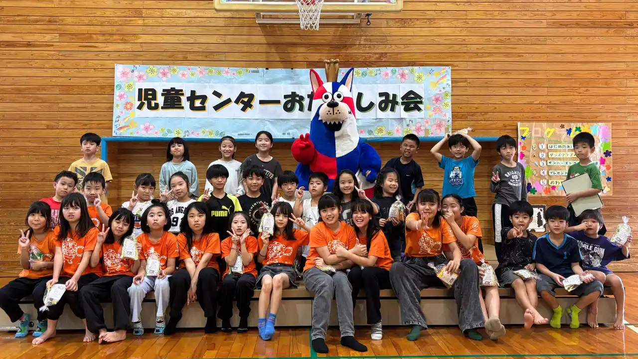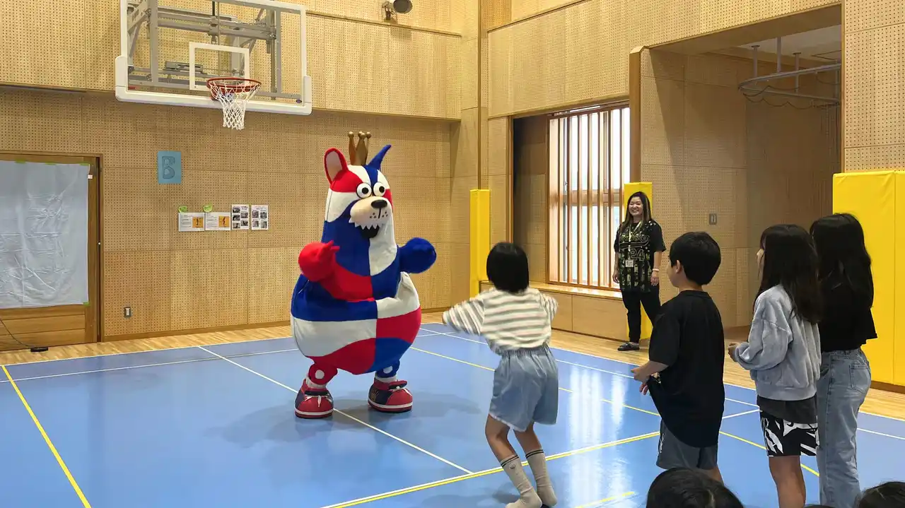 沖縄市内の児童館5館による合同ミニ運動会では、蝶々に扮した子どもたちと一緒に、果物取りゲームやダンスを楽しみました。お楽しみ会では、お菓子のプレゼントをゴーディーから手渡ししたほか、ゴーディーのディフェンスをかわしながらシュートに挑戦するなど、交流を深めました。また、ダンス交流会ではゴーディーがサプライズで登場し、子どもたちは動物をイメージした振り付けや難しい動きにも楽しそうに取り組んでいました。今月も子どもたちの笑顔や元気な声があふれる、温かい交流の時間となりました。 |