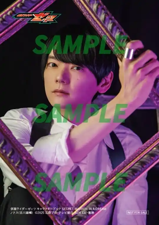 | 主人公・万津莫(演・今井竜太郎)は、夢の中では「極秘防衛機関CODE」に所属する無敵のエージェント。そんなエージェントとしてのスタイリッシュな姿を、彼の作戦室であるゼッツルームにて撮影。さらに、現実世界の万津莫の日常を感じさせる、爽やかなロケ撮影も実施。クール&ナチュラルな莫のギャップが楽しめるグラビアとなっている。 | |||