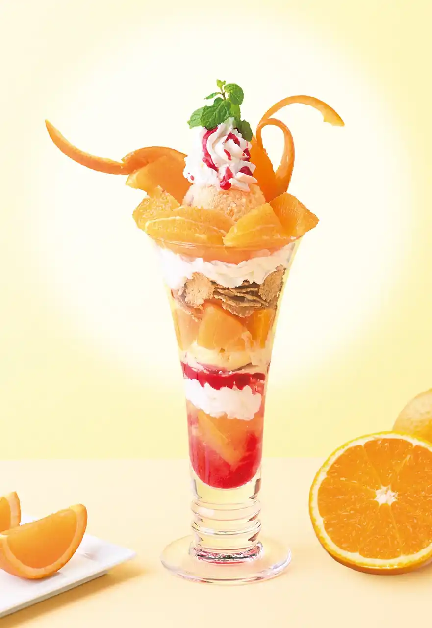 特長:温州みかんとオレンジを掛け合わせた、甘みと酸味のバランスがよく、ジューシーで柔らかな食感が魅力の清見オレンジ。旬ならではのおいしさをパフェでお楽しみください。 |