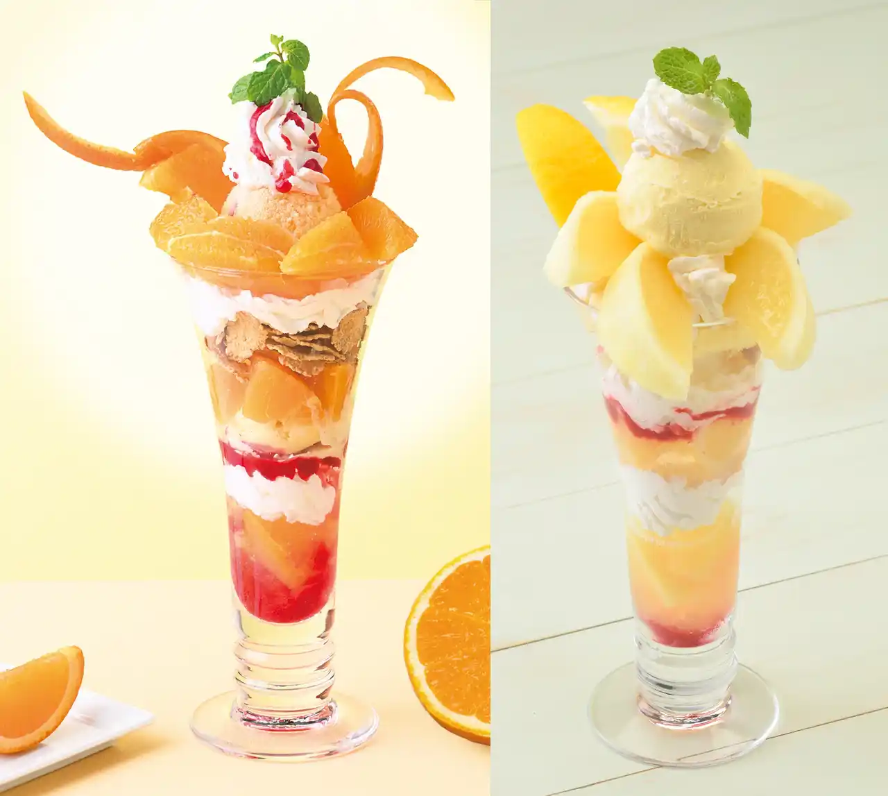 株式会社銀座コージーコーナー<代表取締役社長 庄野和彦 東京都中央区>は、2026年4月3日(金)からカフェ・レストラン併設9店舗で、旬の柑橘(かんきつ)を使用した「愛媛県産清見オレンジのパフェ」と「宮崎県産日向夏のパフェ」を販売します。 |