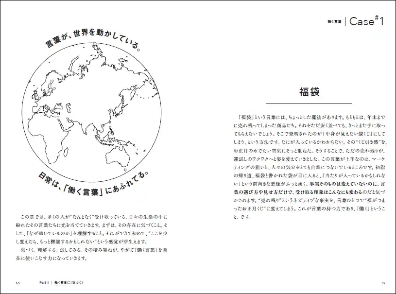 “働く言葉”とは、意味だけでなく「機能」を備えた言葉。その言葉がそこにあるだけで、人の気持ちや意識を変え、行動へとつなげる言葉です。