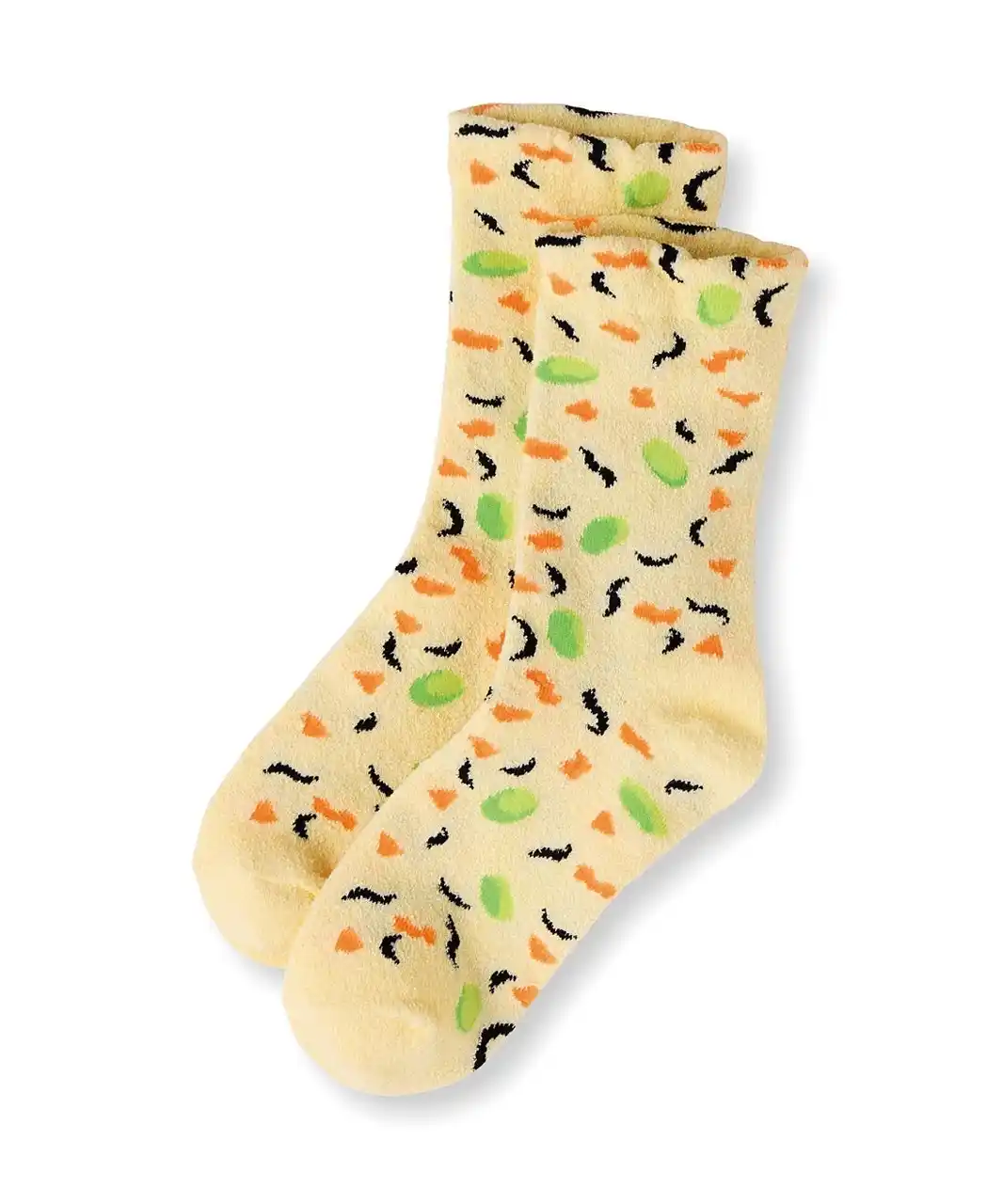 くしゅくしゅ素材で具材の質感を表現。ファッションのアクセントになるデザインが、足もとをたのしく彩ります。 |