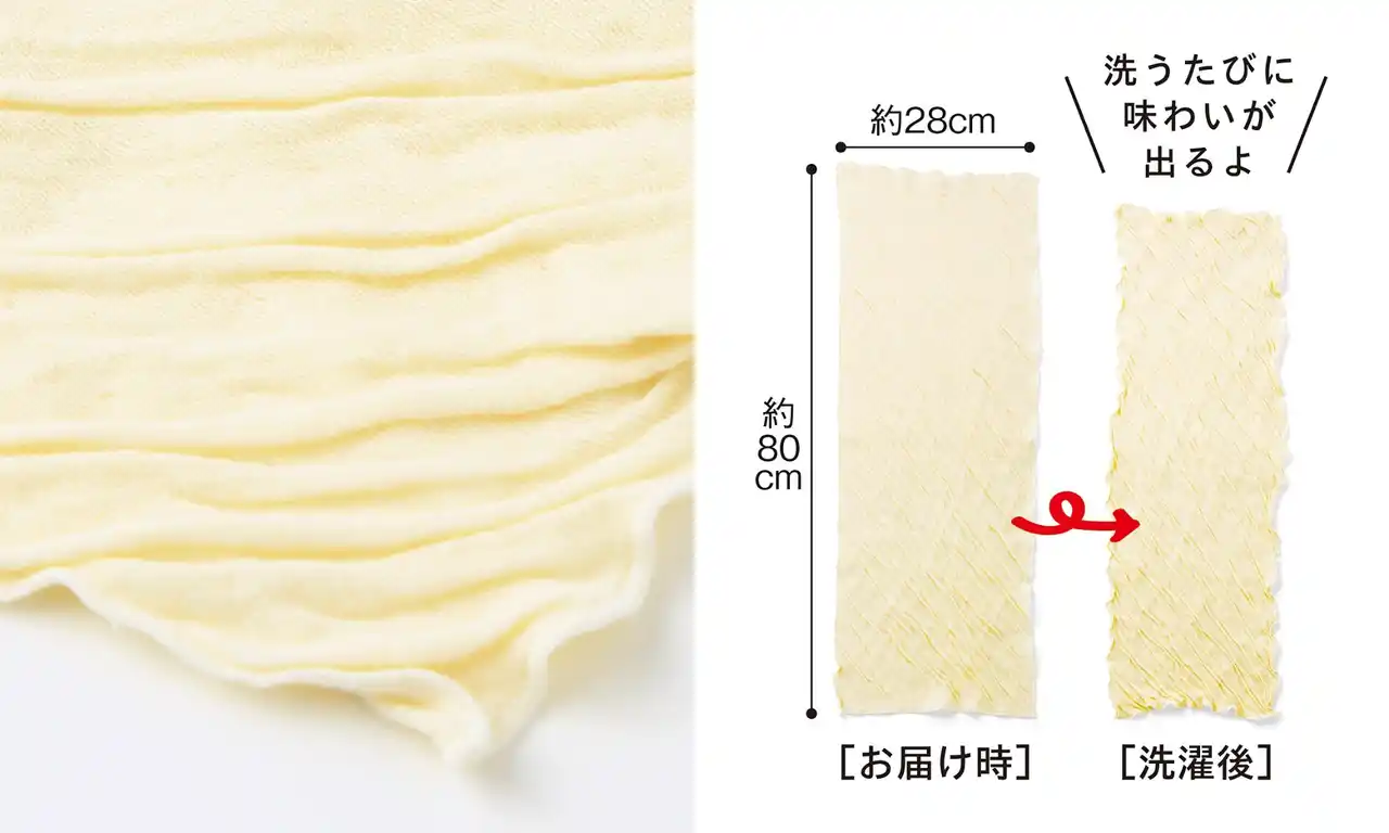 まるで本物のゆばのようなフェイスタオルです。ゆば特有のしわ感がほどこされていて、洗うたびにふんわりやわらかな肌ざわりを実感できます。 |