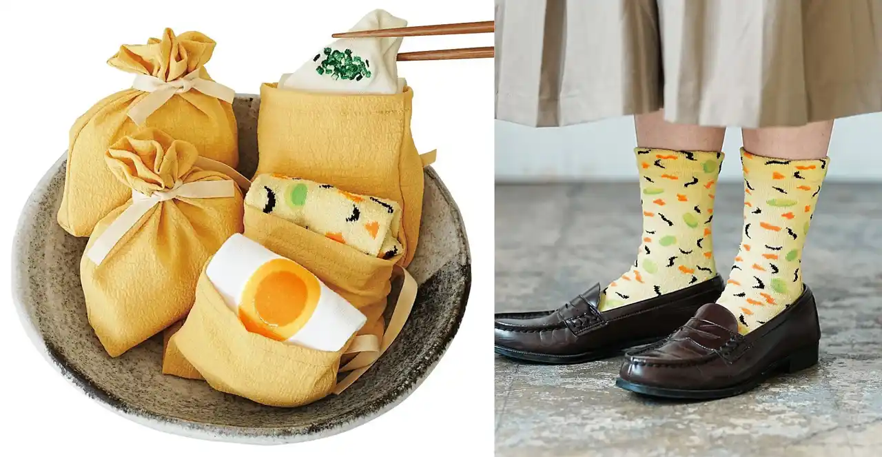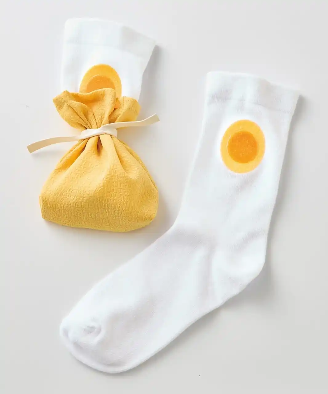 ちりめん風素材の油あげに、具材をモチーフにしたソックスが詰め込まれた巾着ソックスです。イラストや風合いにこだわったデザインで、毎日のおしゃれを楽しくしてくれます。 |