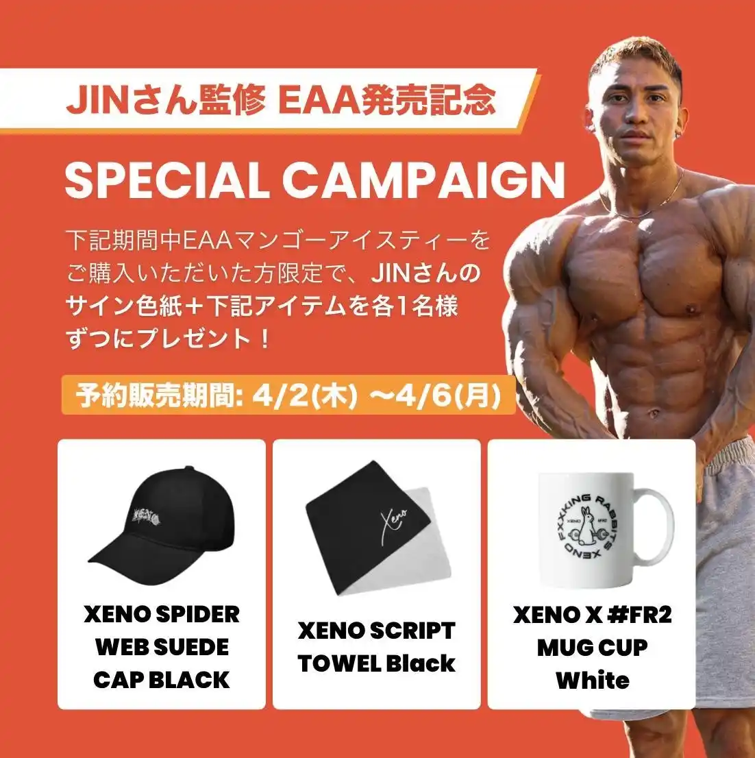 プロとして世界基準の筋肉を追求し続けるJINさんの圧倒的な経験値と、グローバルに商品を展開するNaturecanに蓄積された商品開発ノウハウ。両者の本気がぶつかり合うことで、成分・味・溶けやすさのすべてにおいて限界を突破した最高品質のEAAが完成しました。 |