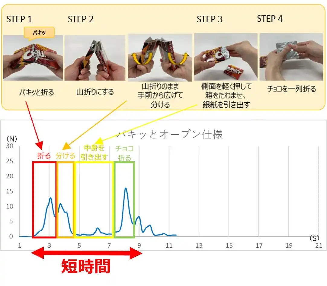 触動作センサーによる開封動作の解析も行い、開封性をとことん追求 |