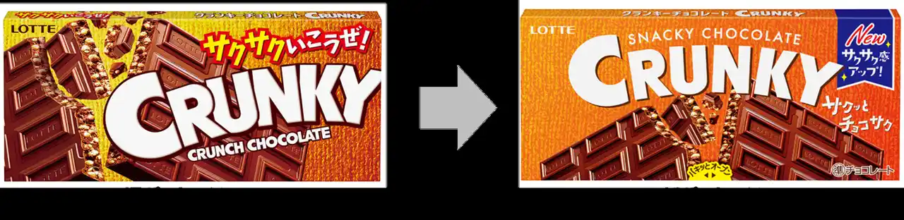株式会社ロッテ(東京都新宿区、代表取締役社長執行役員:中島英樹、以下ロッテ)は、ウェルビーイングな商品をお客様へ届けるため、2026年4月14日(火)より「クランキー」「ザクザクやみつきクランキー」ブランドにて、外箱中央からパキッと折って開封し、2分割できる「パキッとオープン(TM)(*2)」包材を導入し発売します。本仕様は、国内一般流通菓子としては初の取り組み(*1)となります。 |