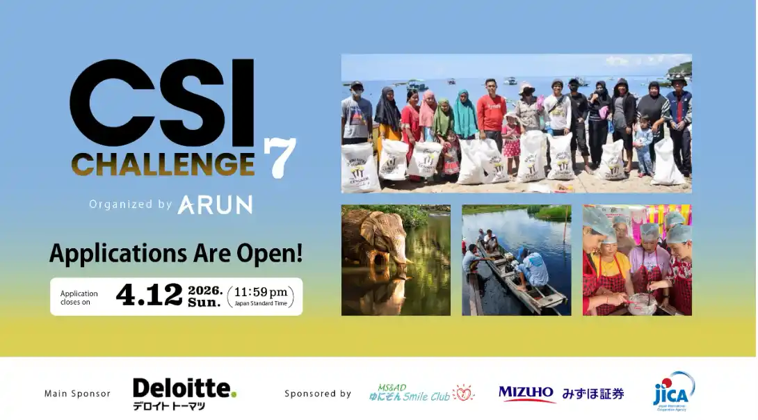 特定非営利活動法人ARUN Seed(東京都文京区、代表:功能聡子、以下、ARUN)は、水を起点にネイチャーポジティブな社会の実現を目指す社会投資型ビジネスコンペティション「第7回CSIチャレンジ」を開催し、2026年4月12日(日)まで国内外の起業家を募集します。