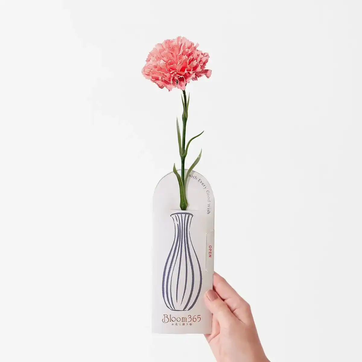 母の日にぴったりなアーティフィシャルフラワーのカーネーションに、選べるギフトを添えた〈Bloom365〉のギフトセット。届いた方が専用サイトで、グルメや暮らしの雑貨、ファッション小物など幅広いアイテムの中からお好きな商品をひとつ選んで、お届けできます。花瓶のイラスト入りの台紙で届くので、そのまま飾っても、お手持ちの花瓶に移しても楽しめます。毎年ひとつずつ贈って花束にしていく、という楽しみ方もできるギフトです。 |