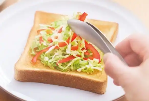 パンにサラダとマヨネーズをプラス。彩りもよくなります。