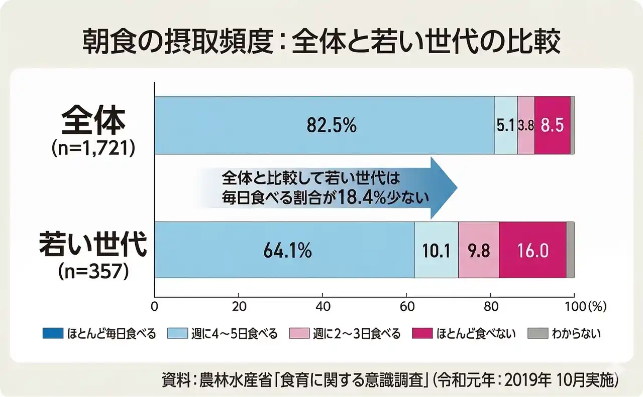 | 2.5人に1人が「朝食をほとんど食べない」?若い世代の課題 | |||||||||||||