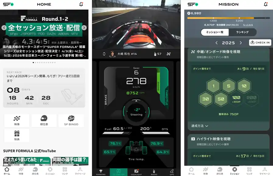 | JRPが提供する『SFgo』は、SUPER FORMULAをより深く楽しめる公式アプリです。今後『SFgo』では、“アジアモータースポーツ界最大のデジタルエンターテイメント”を目指し、AR/VRを取り入れた視聴体験やAIを利用したレース分析など、日本最高峰のレースを多面的に楽しめる機能をさらに充実させていく予定です。 | |||