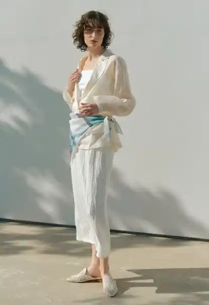 程良く肌魅せが叶い、シアーな抜け感もある初夏に向けて冷房対策や軽い羽織物として |