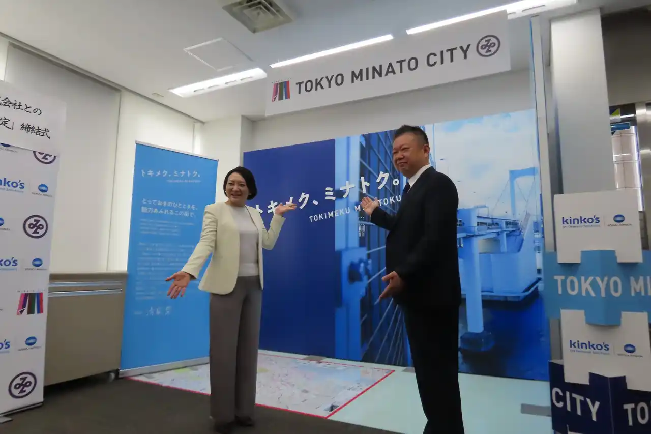 これに伴い、2026年3月30日、キンコーズ・品川店にて、渡辺浩基キンコーズ代表取締役社長と清家愛港区長による協定締結式を実施しました。 |
