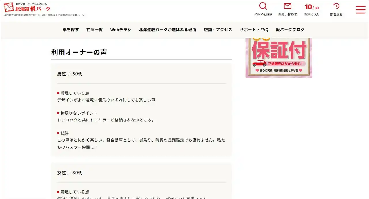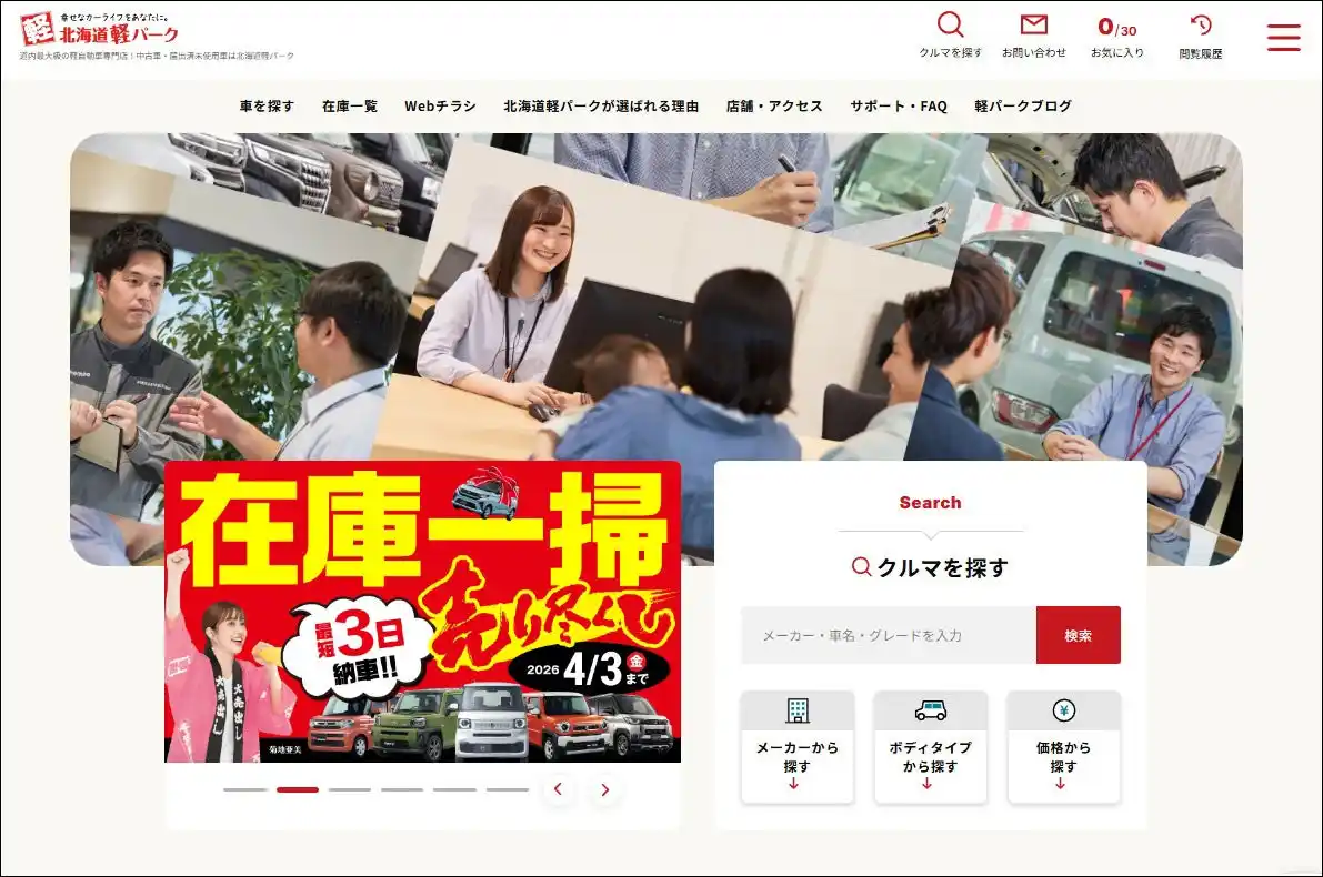 | 【年間1万台超の対応実績】北海道最大級の軽自動車専門店「北海道軽パーク」公式サイトを全面リニューアル― 最大30台比較機能と北海道特化コンテンツで、より選びやすい購入体験へ ― |