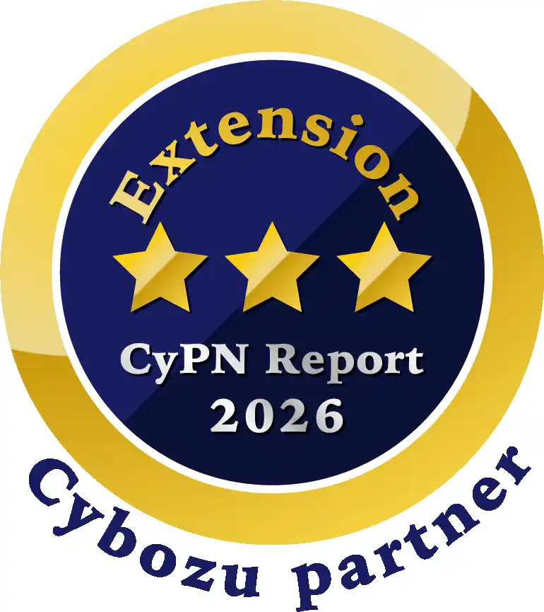 アールスリーインスティテュート(本社:大阪府大阪市、代表取締役:西松顯、以下「当社」)は、サイボウズ株式会社(本社:東京都中央区、代表取締役社長:青野 慶久、以下サイボウズ)のオフィシャルパートナー評価制度「Cybozu Partner Network Report 2026(通称:CyPN Report / サイパンレポート)」において、2026年4月1日(水)付けで、インテグレーション部門およびエクステンション部門の2部門において、最高評価となる「三つ星」を獲得いたしましたので、お知らせいたします。 |