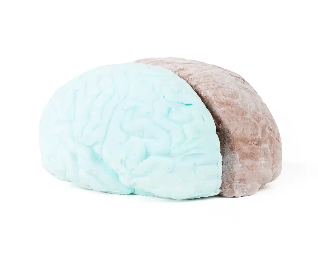脳みその形状をリアルに再現しながら、右脳と左脳でチョコとミントの色がランダムに分かれるデザインに。どちらがミント脳になっているかは、届いてからのお楽しみ。 |
