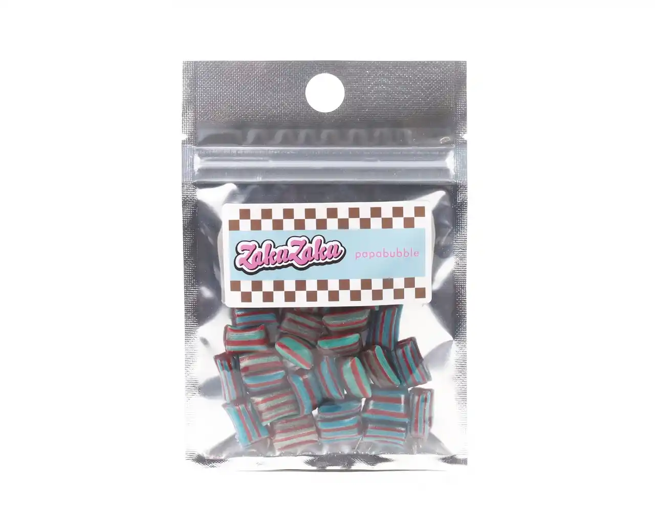 ミントブルーとチョコレートカラーを基調に、爽やかさと遊び心を感じるデザインに仕上げています。持ち手にはキャンディの縞模様をイメージしたストライプをあしらい、アクセントを加えました。 |