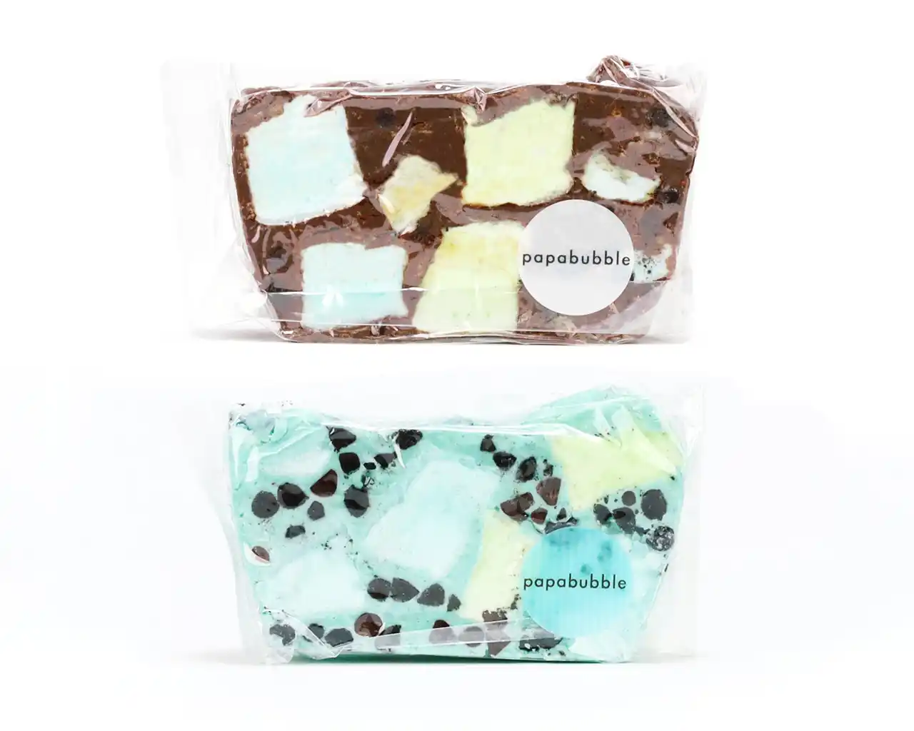 毎年人気のPAPABUBBLEのチョコミントシリーズの中でも、特におすすめのチョコレート商品。ロッキーロードとは、チョコレートの中にマシュマロやクッキーなどを混ぜ込んだ、断面の見た目と食感を楽しめるチョコレートです。 |
