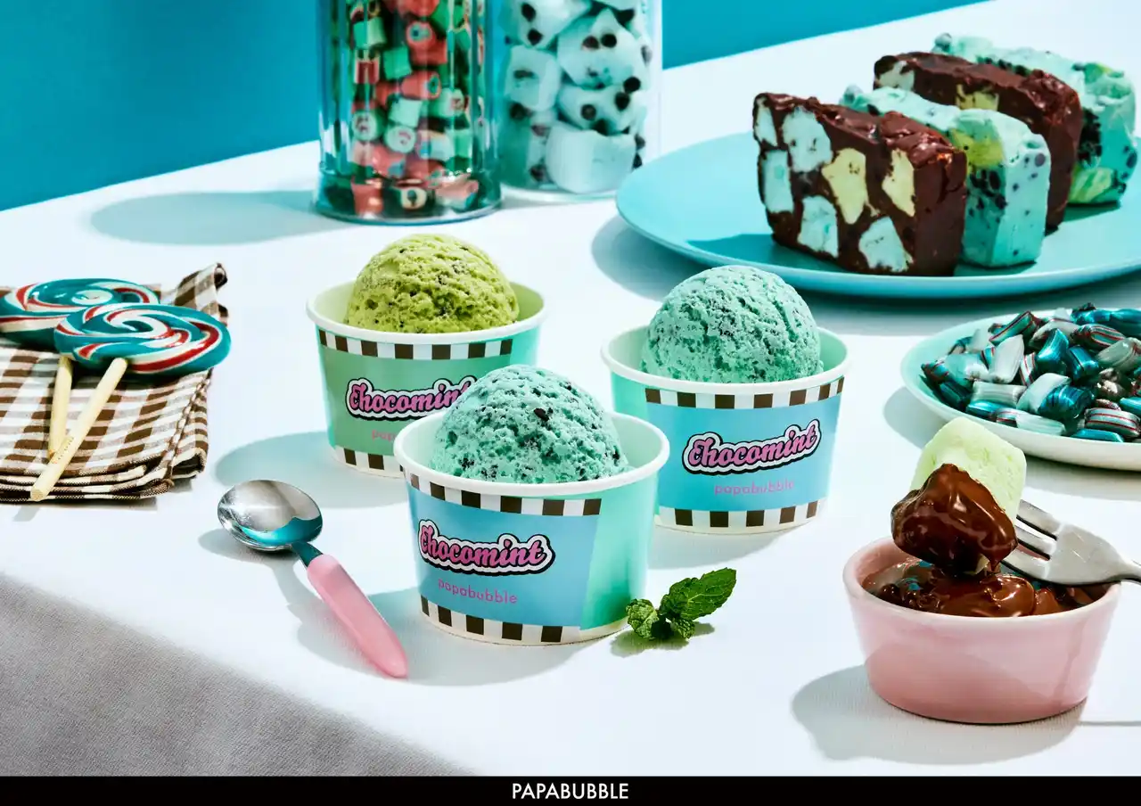 レトロアメリカンなアイスショップを思わせるポップなデザインのキャンディや、ミントの爽快感を楽しめるチョコレート、遊び心あふれるユニークなスイーツなど、チョコミント好きにはたまらないラインナップが揃います。見た目の楽しさと味わいの奥行きを兼ね備えた、PAPABUBBLEならではのチョコミントシリーズです。 |