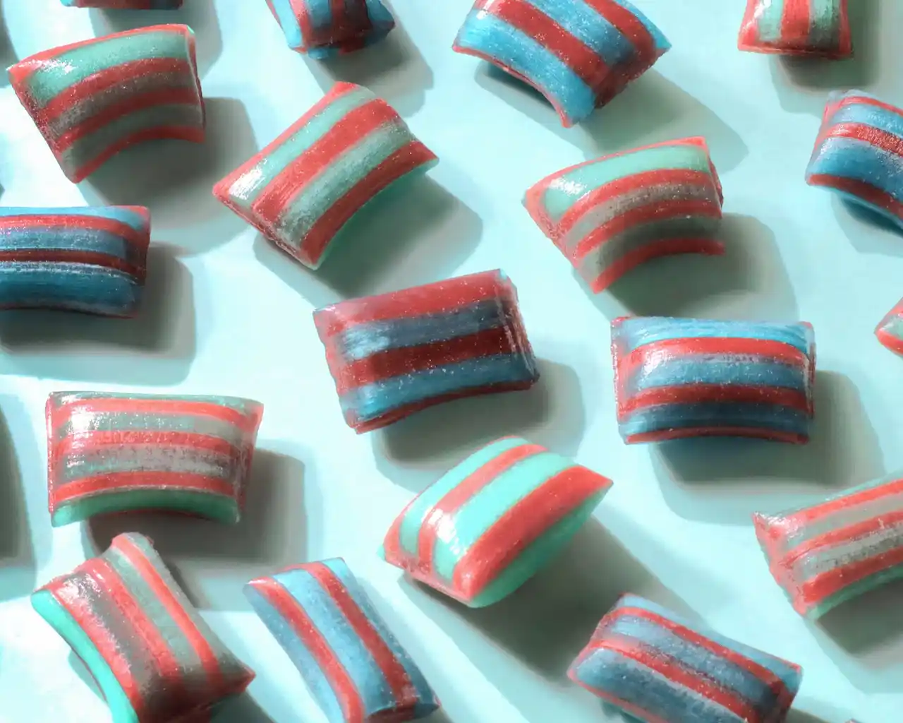 さらに通常のチョコミントキャンディよりも折り込み回数を増やし、全65層のキャンディとチョコレートで仕上げることで、噛んだ瞬間に広がる食感の楽しさを実現しています。 |