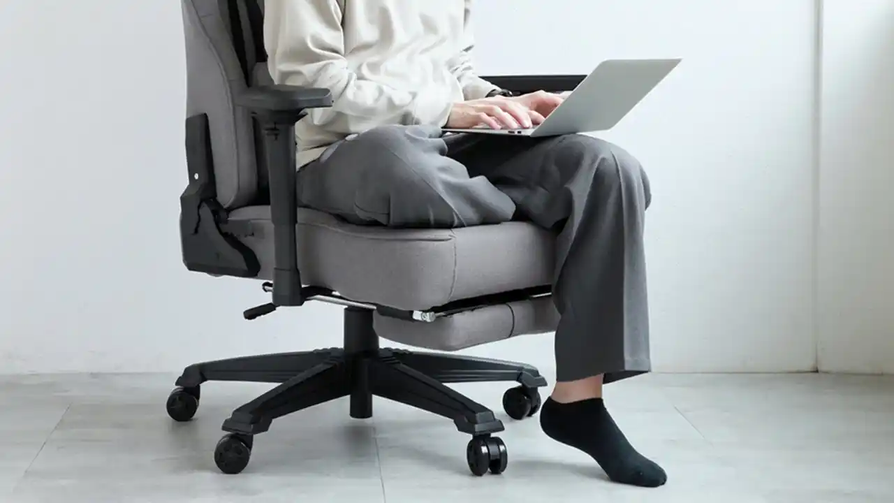 本製品は「座る姿勢も自由に、リラックスも集中も快適に」をコンセプトに開発され、従来の派手なゲーミングチェアとは一線を画す、落ち着いたライトグレーのファブリック素材を採用。生活空間に自然に溶け込むデザインと高い快適性を両立させました。 |