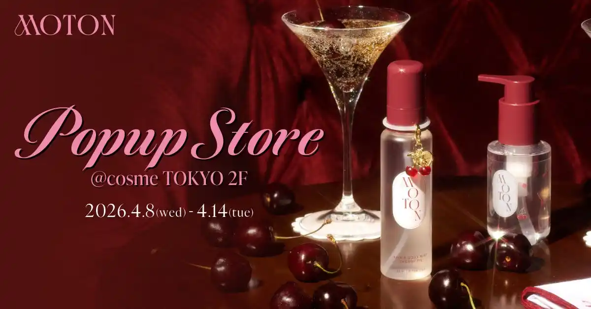 化粧品・雑貨の輸入販売、企画を行う株式会社lalalajapan(本社:東京都目黒区、代表取締役:山崎みのり)のライフスタイルブランド「MOTON」の新商品「CHERRY PIE」の発売を記念したポップアップイベントを期間限定で開催いたします。 |