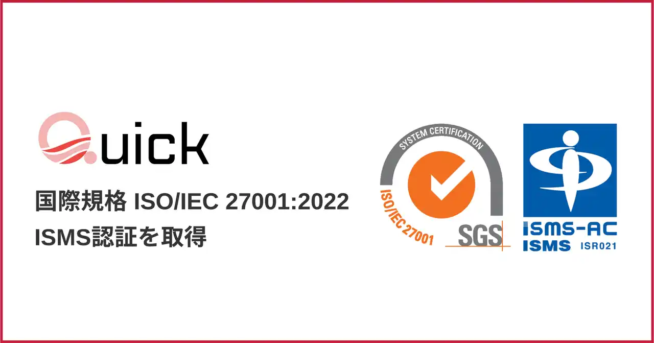 「進化し続ける医療インフラをつくる」をミッションに掲げる筑波大学発スタートアップ、株式会社Quick(本社:茨城県つくば市、代表取締役:武田淳宏、以下「Quick」)は、情報セキュリティマネジメントシステム(ISMS)の国際規格「ISO/IEC 27001:2022」の認証を取得したことをお知らせいたします。 |