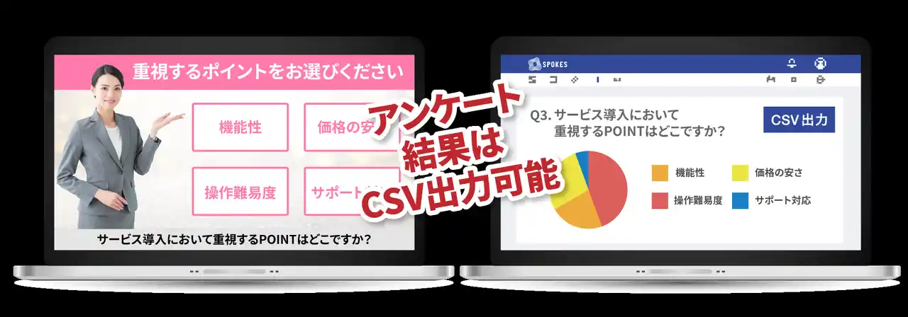 取得したアンケート結果はCSV出力も可能です。動画から取得した定量的なデータを事業にご活用いただけます。 |