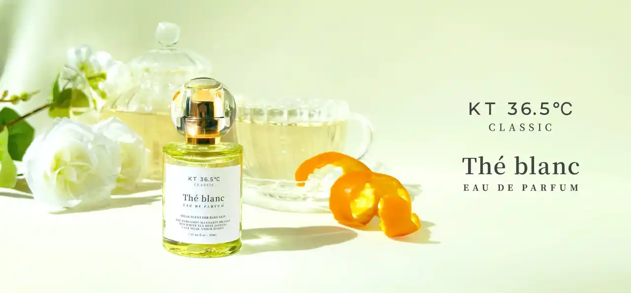 フレグランスブランド【KT36.5℃】は、ブランド7作目となる「CLASSIC」シリーズ第2弾として、ホワイトティーの透明感を纏う新作フレグランス『The blanc(テ・ブラン)』を発売いたします。 |