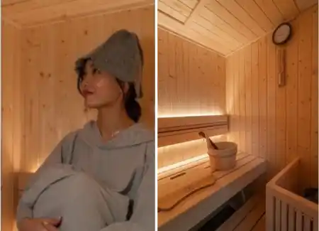 独立したヴィラにはメトスが誇るメイドインジャパンのプライベートサウナを完備しています。木の温もりに包まれたサウナ室はセルフロウリュが可能で、ロウリュ用のアロマオイル(rento)もご用意しています。心地よい蒸気と香りが全身を包み込み、自分好みのサウナを体験いただけます。 |
