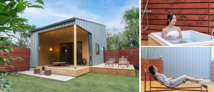 プライベートガーデンではサウナの本場フィンランドさながらのBBQや焚火体験、120インチ対応プロジェクター&スクリーンによるリラクゼーション空間も演出しています。非日常のウェルネス体験をお愉しみいただけます。 |