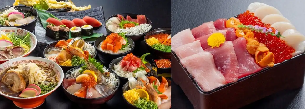 踊る車海老!春の黒潮丼、桜鯛と鮪の紅白市場丼、桜鯛と鮪の漁師丼 |
