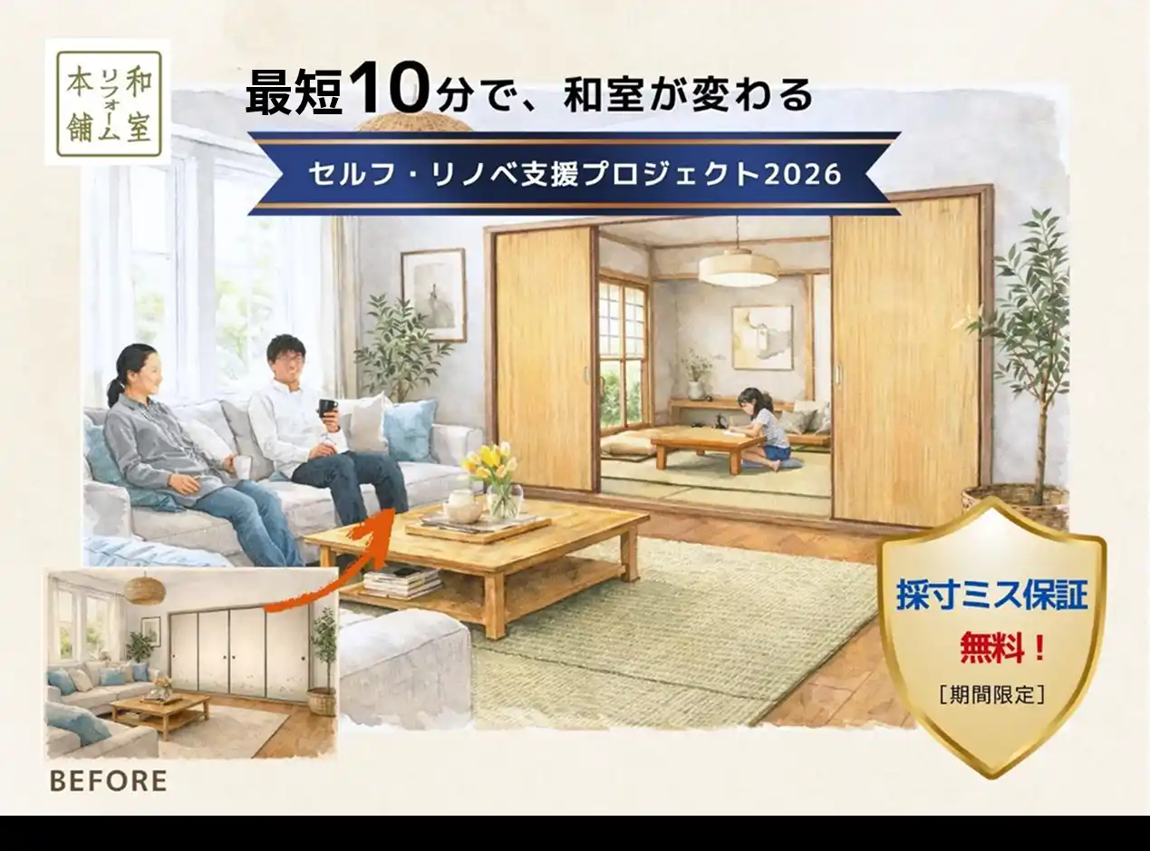 | 和室リフォーム本舗は、こうした「セルフリノベーション」という考え方を通じて、より多くの人が住まいづくりに主体的に関われる環境を提案してまいります。 | |||