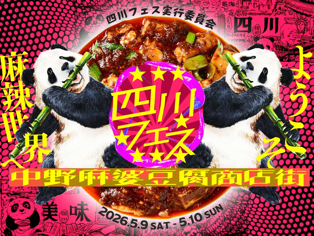 2026年5月9日(土)~5月10日(日)、四川フェス実行委員会(麻辣連盟、時色株式会社、株式会社場創総合研究所)と中国駐東京観光代表処、一般社団法人中野区観光協会は、中野セントラルパークにて「四川フェス2026@中野麻婆豆腐商店街」を開催いたします。 |