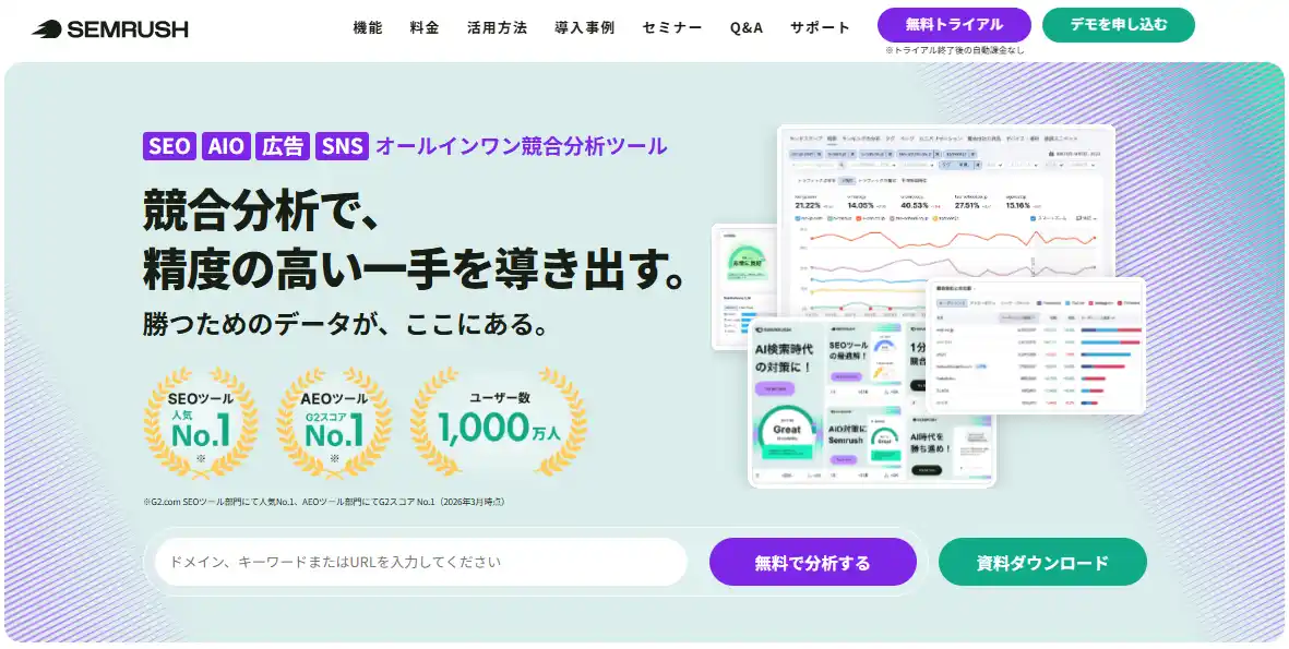 | Semrushは2008年の創業以来、キーワード調査や競合分析を中心としたSEOツールとして世界中のマーケターに支持されてきました。しかし近年、検索の形は大きく変化しています。従来の検索エンジンに加え、AIによる回答生成(ChatGPT、AIによる概要等)、SNS、コミュニティフォーラムでの情報収集など、ユーザーがブランドと出会う場所は多様化・分散化しています。 | |||