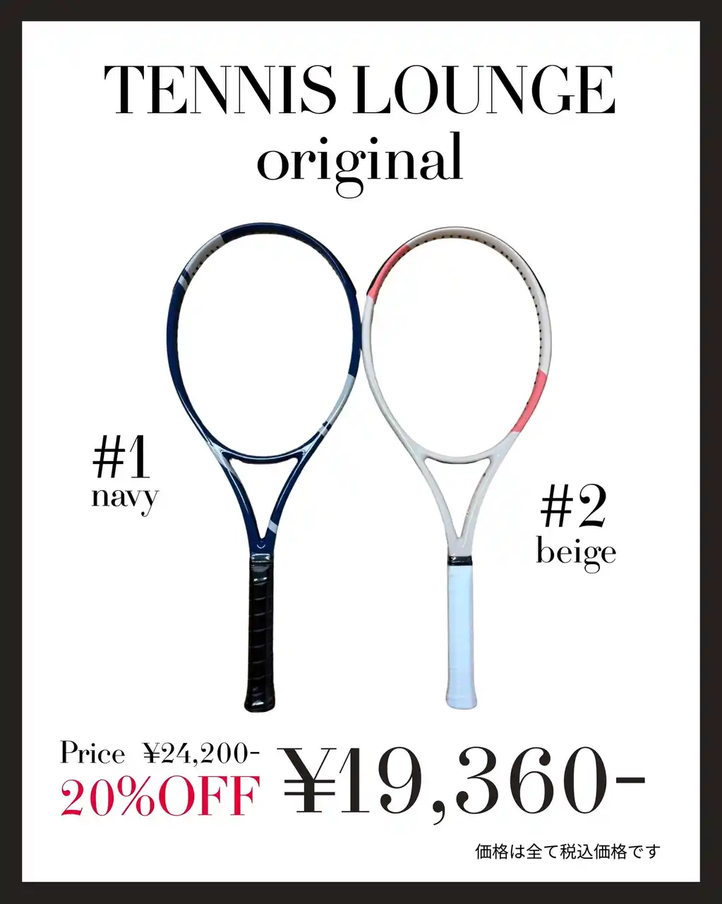 ・ スペシャル特典(ストリング付き、加工料無料、無料レッスンチケット1枚(テニスラウンジ会員限定)プレゼント) |