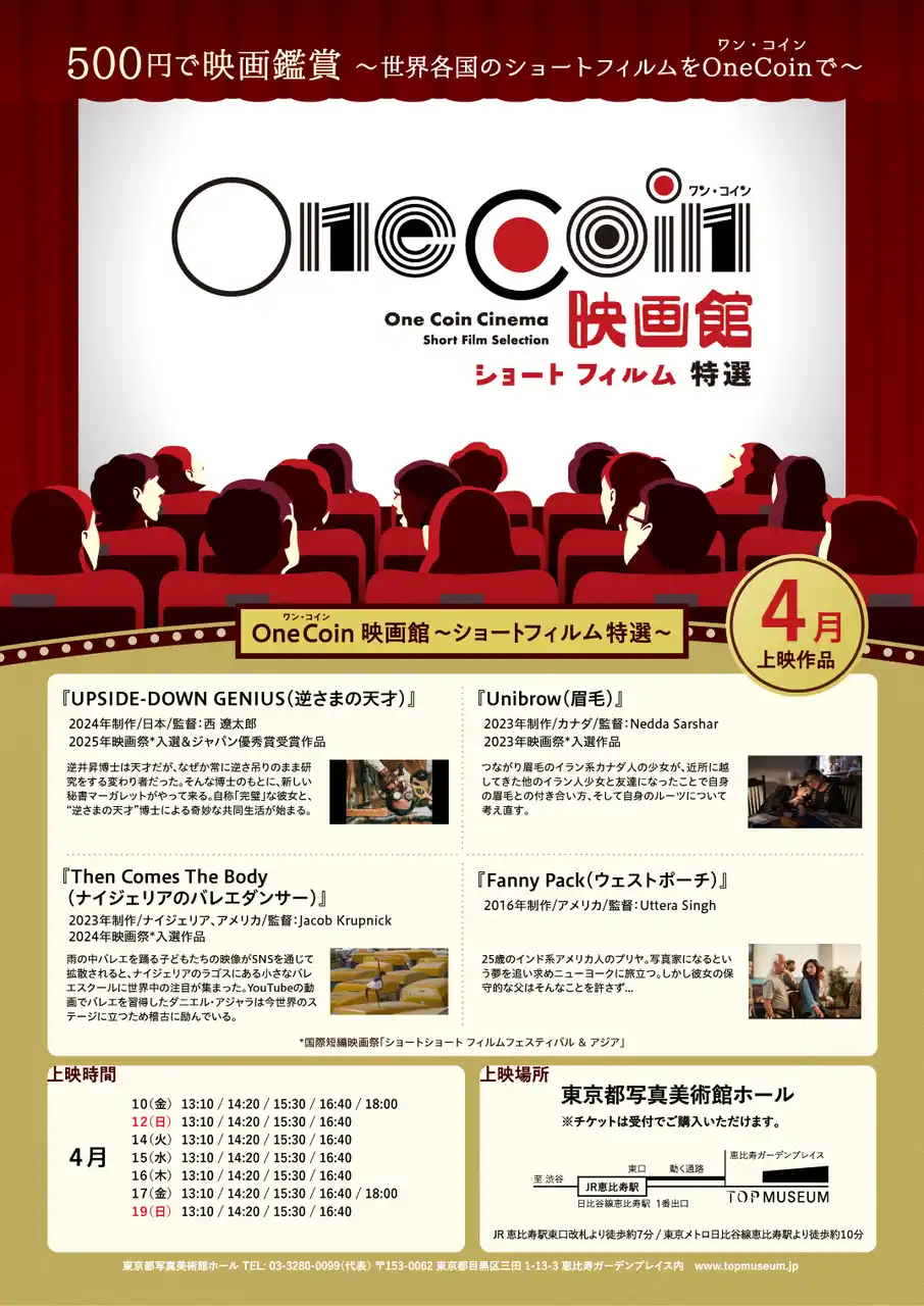 4月の「OneCoin映画館~ショートフィルム特選~」上映作品/スケジュール