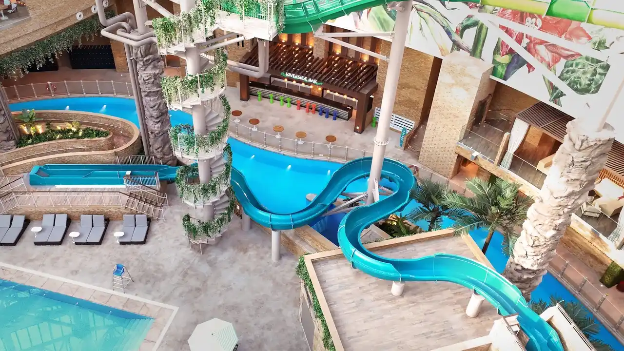 全長150メートルのデジタル・エンターテインメント・ストリート「オーロラ」では、高精細LEDによる幻想的な映像美でお客様をお迎えします。巨大なガラスドームの中に広がる「スプラッシュベイ」は、一年を通してトロピカルな気分を味わえる屋内ウォーターパークとして、スリル満点のウォータースライダーや流れるプール、そして夜はラグジュアリーなプールサイド・ラウンジとして、昼夜を問わずお楽しみいただけます。 |