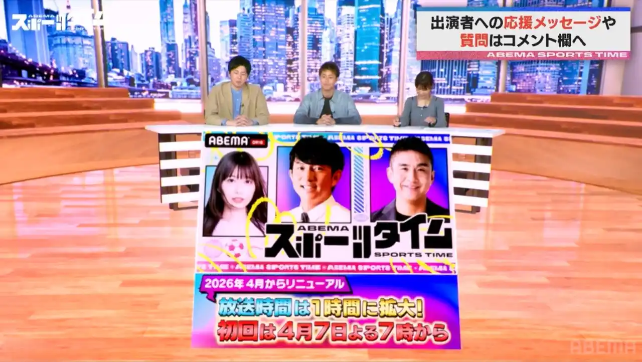 新しい未来のテレビ「ABEMA(アベマ)」は、2026年3月29日(日)夜10時より、スポーツ番組『ABEMAスポーツタイム』を放送いたしました。 |