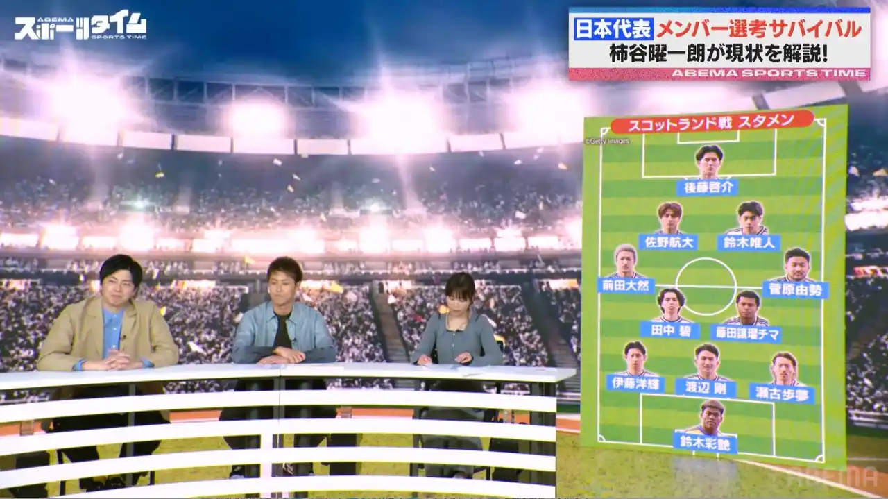 まず番組では、W杯メンバー選考の最終局面とも言われる欧州遠征を深掘り。日本代表はスコットランド戦で1-0と勝利し、内容面でも手応えを感じさせる試合を見せました。柿谷氏は「しっかり勝ち切ったことが素晴らしい」と評価しつつ、「今まで試合に出ていない選手が出ていたが、これはテストじゃない。今までの主力と言われている選手以外のところで、主力の選手同様、ないしはそれ以上のパワーをどれだけ出せるのかを見極める必要があった」とコメント。メンバーが大きく入れ替わる中でも「一人一人の立ち位置が良く、イメージが共有されていた」とチームとしての完成度の高さを称えました。 |