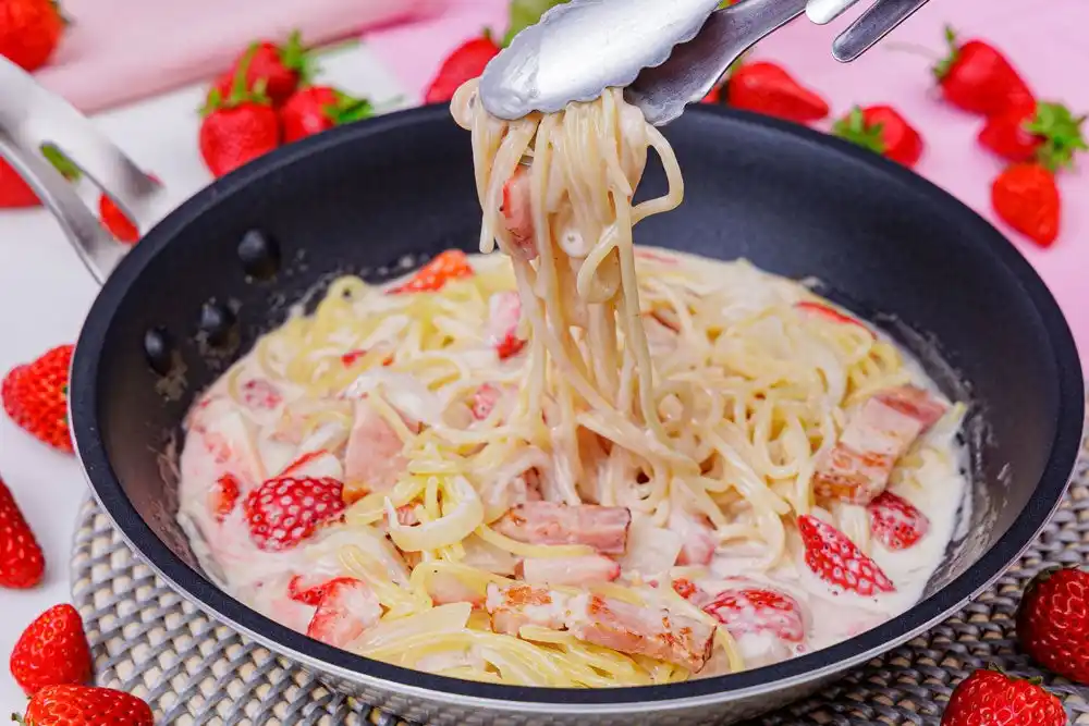 | また、目の前で仕上げる「いちごのクリームスパゲティ」は甘酸っぱいいちごとまろやかなクリームソースが絡み合う新感覚の一品。意外な組み合わせが生み出す絶妙な味わいをお楽しみください。 | |||||||||||||||
