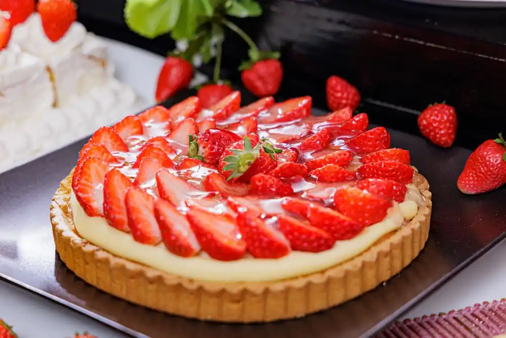 | さらにスイーツコーナーでは旬のいちごをふんだんに使ったスイーツが勢揃い。バタークリームをサンドした「いちごのマカロン」やアーモンドクリームを敷き詰めて焼き上げたタルト生地に、カスタードクリームやいちごのピューレ、フレッシュいちごを重ねた贅沢な「いちごのタルト」など、多彩なスイーツが並びます。 | |||||||||||||||