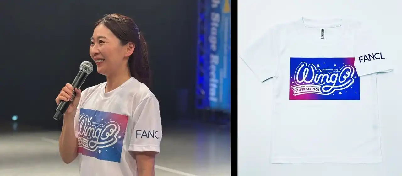 2026年度のチアスクールオリジナルレッスンTシャツに、当社のロゴが入ります。今年のデザインテーマは、「Wing(ウイング)」。「翼」や「羽ばたき」をイメージし、スクール生一人ひとりが大きく夢に向かって成長してほしいとの願いが込められている中、当社も一緒に応援していきます。 |