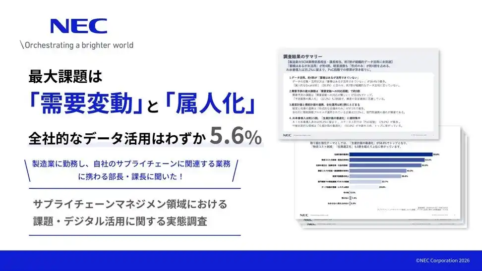 【NECトピックス】 NEC、「サプライチェーンマネジメント領域における課題・デジタル活用に関する実態調査」レポートを公開