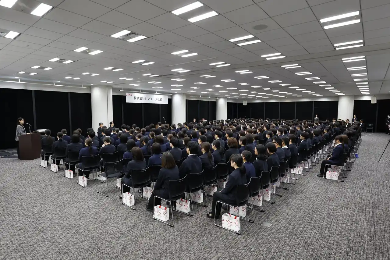 株式会社ジンズ(以下JINS)は、2026年4月1日(水)にベルサール神田にて2026年度新卒入社式を開催し、多様なバックグラウンドを持つ238名が「グローバル社員」として同日入社しました。 |